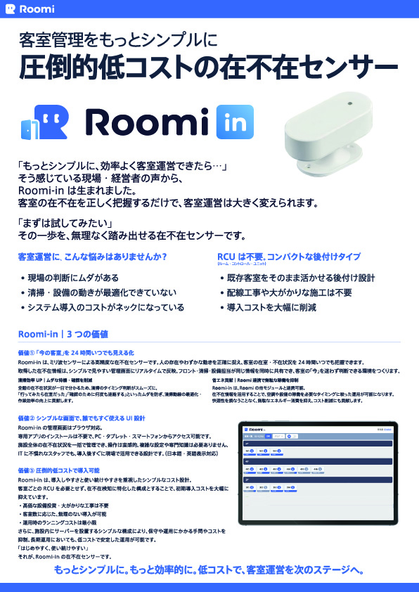 そう感じている現場・経営者の声から、Roomi-inは生まれました。